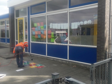 Bewegen en leren op het schoolplein, hoe leuk is dat! Hinkelbaan, sportveldje of een puzzeltje, met onze applicaties kunnen we alle vormen en alle formaten aanbrengen. In alle kleuren! Het schoolplein ziet er meteen gezellig uit en de kinderen kunnen na het aanbrengen direct met elkaar buiten spelen. Het maakt het voor ieder kind een feestje.