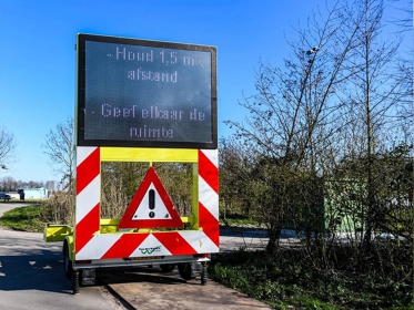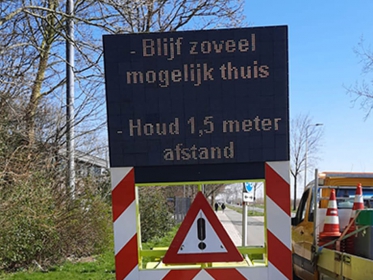 In het belang van de volksgezondheid blijft iedereen zoveel mogelijk binnen. Deze Corona-pandemie houdt het land in zijn greep. Het is belangrijk om mensen te (blijven) wijzen op de risico's en voorzorgsmaatregelen. Op verschillende plaatsen zijn daarom direct tekstwagens geplaatst met een duidelijke boodschap. Met afzettingen en borden zijn voorzorgsmaatregelen genomen om veilig te kunnen werken.